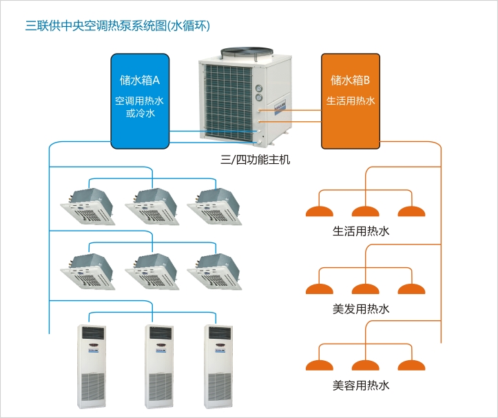 采暖、制冷的同時均可以實現全年熱水的供應。